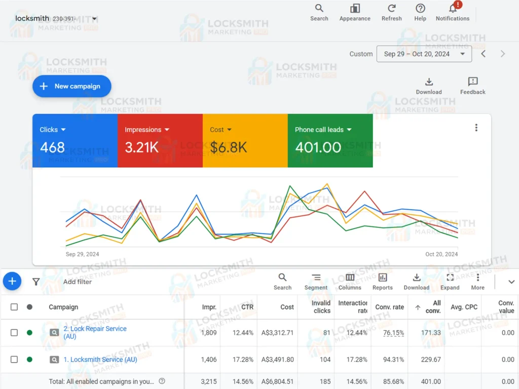 I began managing this Australia based project when the client approached me without a website. He needed a complete online presence along with a fresh Google Ads setup to start generating leads. Within the first week of launching, the campaign began producing strong results with calls coming in at an affordable rate between $14 and $16, giving the client a solid foundation to grow.