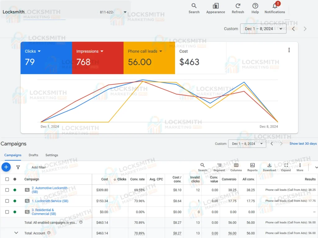 The new website and optimized Google Ads structure helped generate more than 230+ calls in a month, bringing in high-intent customers ready to book services.