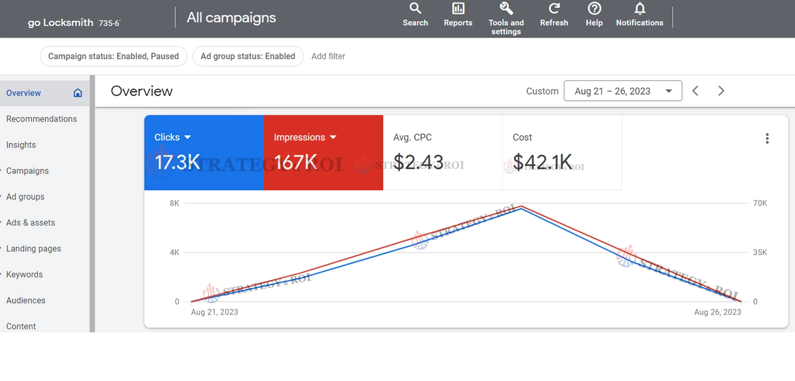 As one of the top SEM agencies with a talented team of search engine marketers, Strategy & ROI offers services by collaborating with locksmith companies to ensure they get optimum outcomes. We can proudly say that we have created and implemented many successful campaigns and have effectively assisted many business owners achieve their goals. Our company takes your online locksmith business to the right audience every time with our efficacious campaign.